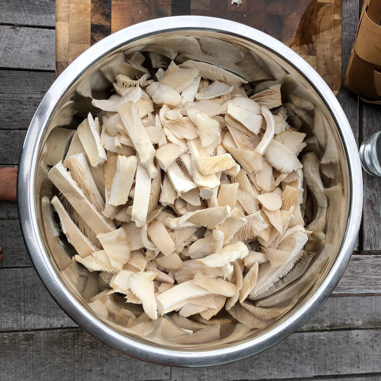 We found so many of these beauties that cleaning them takes a bit of time, what with the bugs and forest debris that find their way in between the gills. It’s a bit of a process but we find dipping them quickly in a bowl of water or wiping them off with a damp cloth, cutting off all the not-so-nice bits and slicing them up ready to sauté them for the freezer is the quickest way to deal with them. Not a bad day to spend an hour or so outside on the deck on a lovely summer day!